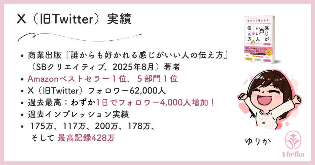 シングルマザーとしてどん底の時期を経験しながらも、Canvaで作った図解をX(旧Twitter)に投稿したことをきっかけに、フォロワー6万人を突破。